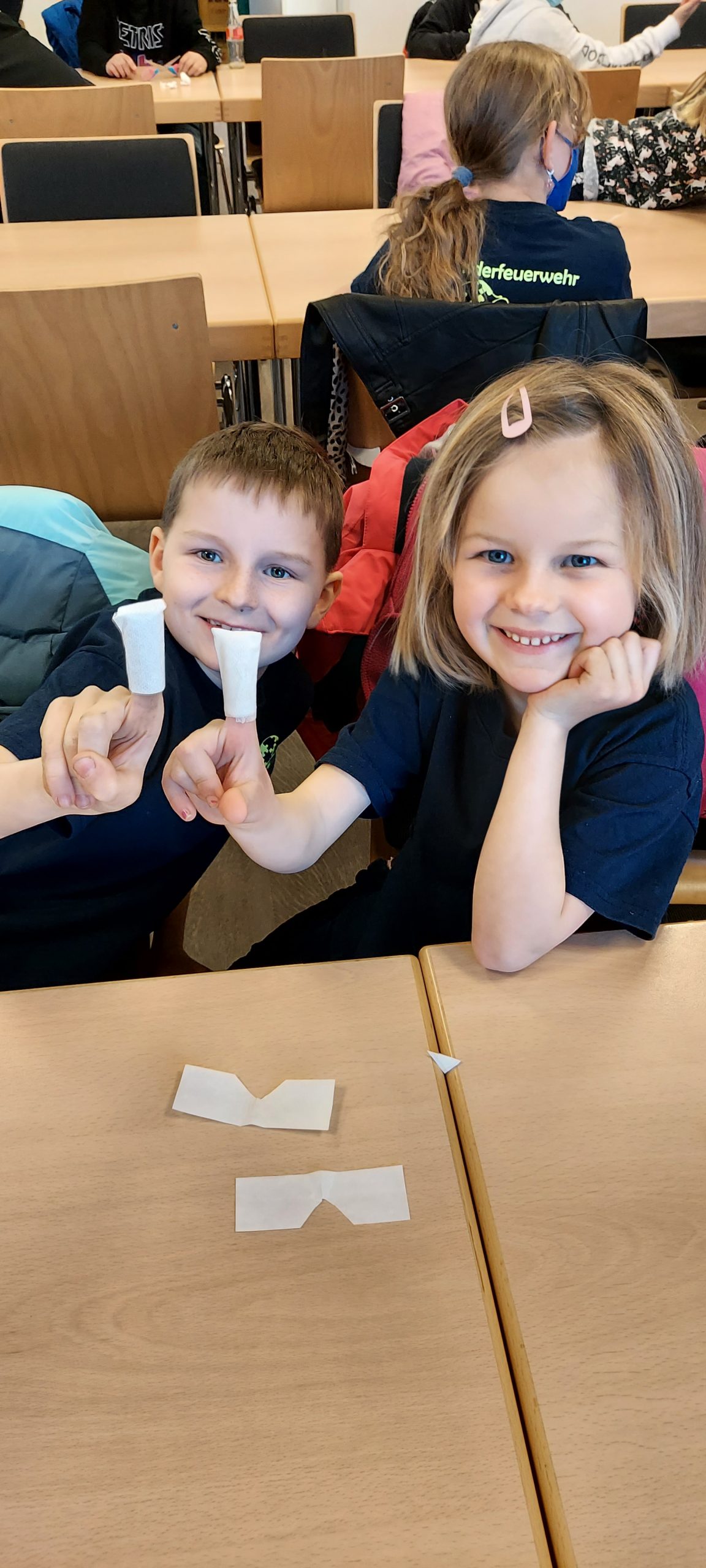 Nach einer längeren Corona bedingten Pause der Dienstnachmittage, ging es mit voller Motivation wieder los. Elke Rose vom DRK war zu besuch und hat den Kindern das wichtige Trösten in Notsituationen, sowie einen Fingerkuppen-Verband und das Nutzen einer Rettungsdecke nahegebracht.