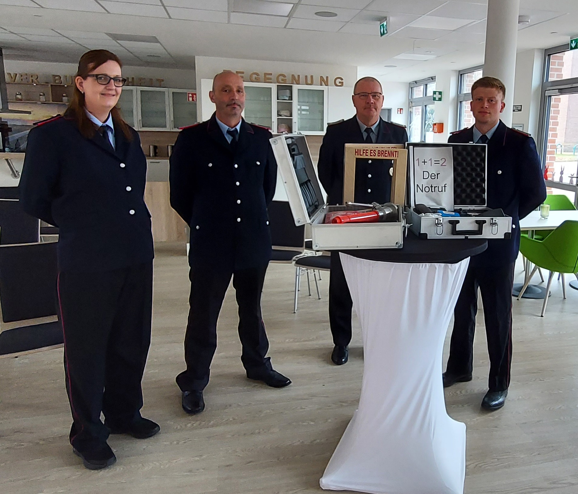 Der Ortsbrandmeister und die Betreuer der Kinderfeuerwehr haben eine Sachspende von Kallimero im Familienzentrum in Bunde entgegengenommen. Durch den Erhalt von zwei Übungskoffern können den Kindern noch mehr Eindrücke in die Arbeit der Feuerwehr vermittelt werden.