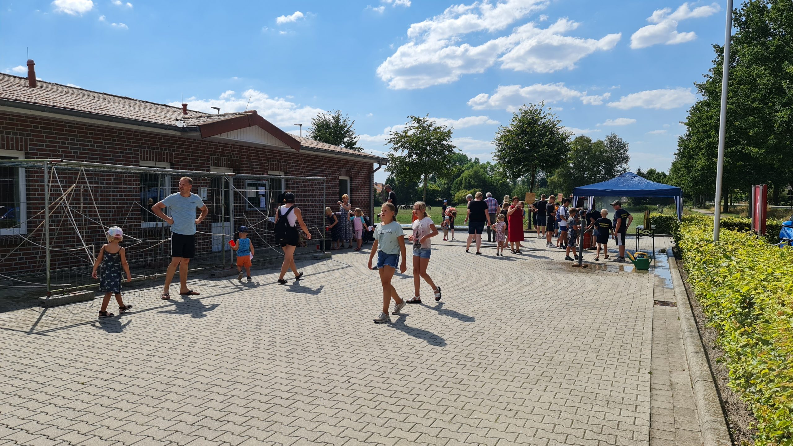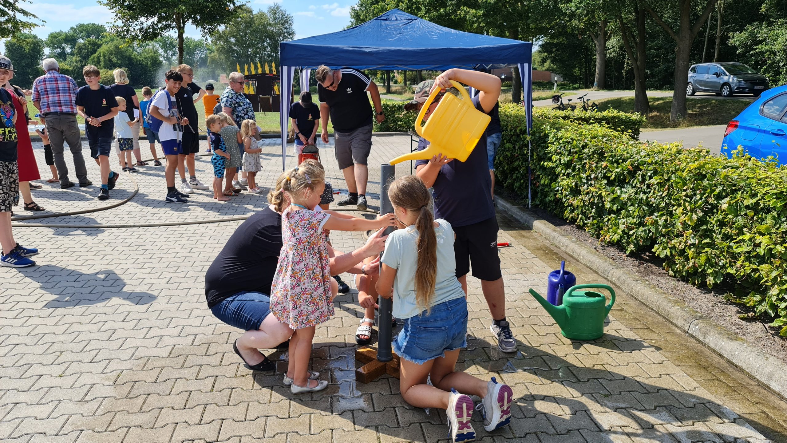Bis zu 70 Kinder haben den Nachmittag bei uns verbracht. Bei bestem Sonnenschein wurde bei vielen Wasserspielen für Abkühlung gesorgt. Außerdem gab es eine Hüpfburg sowie das bekannte „Kistenstapeln“.
