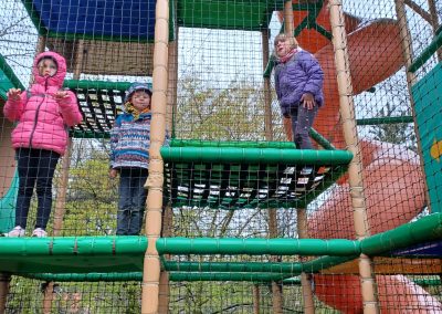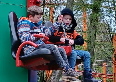 Bevor die Tiere und Fahrgeschäfte erkundigt wurden, sind wir mit einem gemeinsamen Frühstück am Bus gestartet. Wir sind in kleineren Gruppen durch den Park gelaufen. Trotz des regnerischen Wetters hatten alle Beteiligten großen Spaß. Kleine sowie große Tiere wurden begutachtet und für jedes Kind war eine Attraktionen vorhanden, die mit Freude befahren wurden. Auch die Spielplätze wurden von den Kindern unsicher gemacht. Es wurde viel gelacht und die Kinder konnten sich an dem Tag kennenlernen.