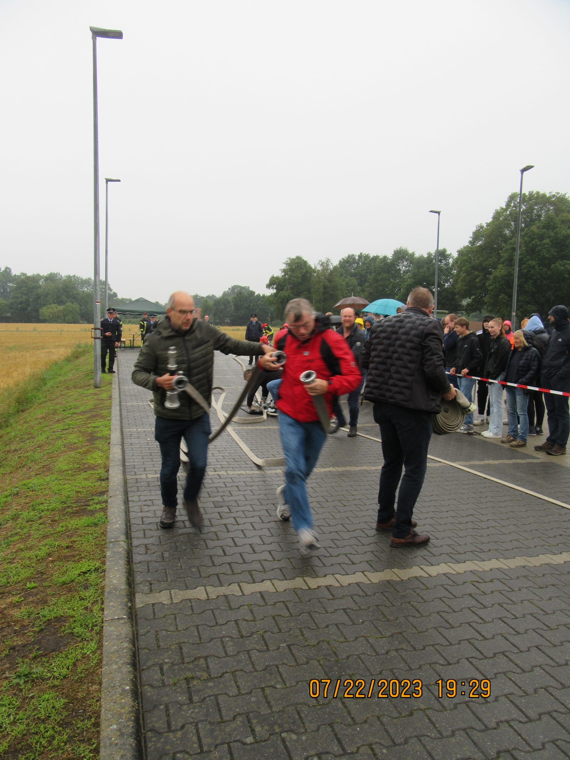 Endlich war es wieder soweit. Trotz des sehr nassen Wetters, fand unser diesjähriger Wettkampf der Hobby- und Straßenmannschaften statt. 8 Mannschaften haben sich angemeldet, darunter alt bekannte aber auch ganz neue Gruppen. Es wurde ein fairer Wettkampf abgehalten, bei dem das Schiedsrichterteam die Zeiten stoppten und auf Richtigkeit der Übung achteten.
