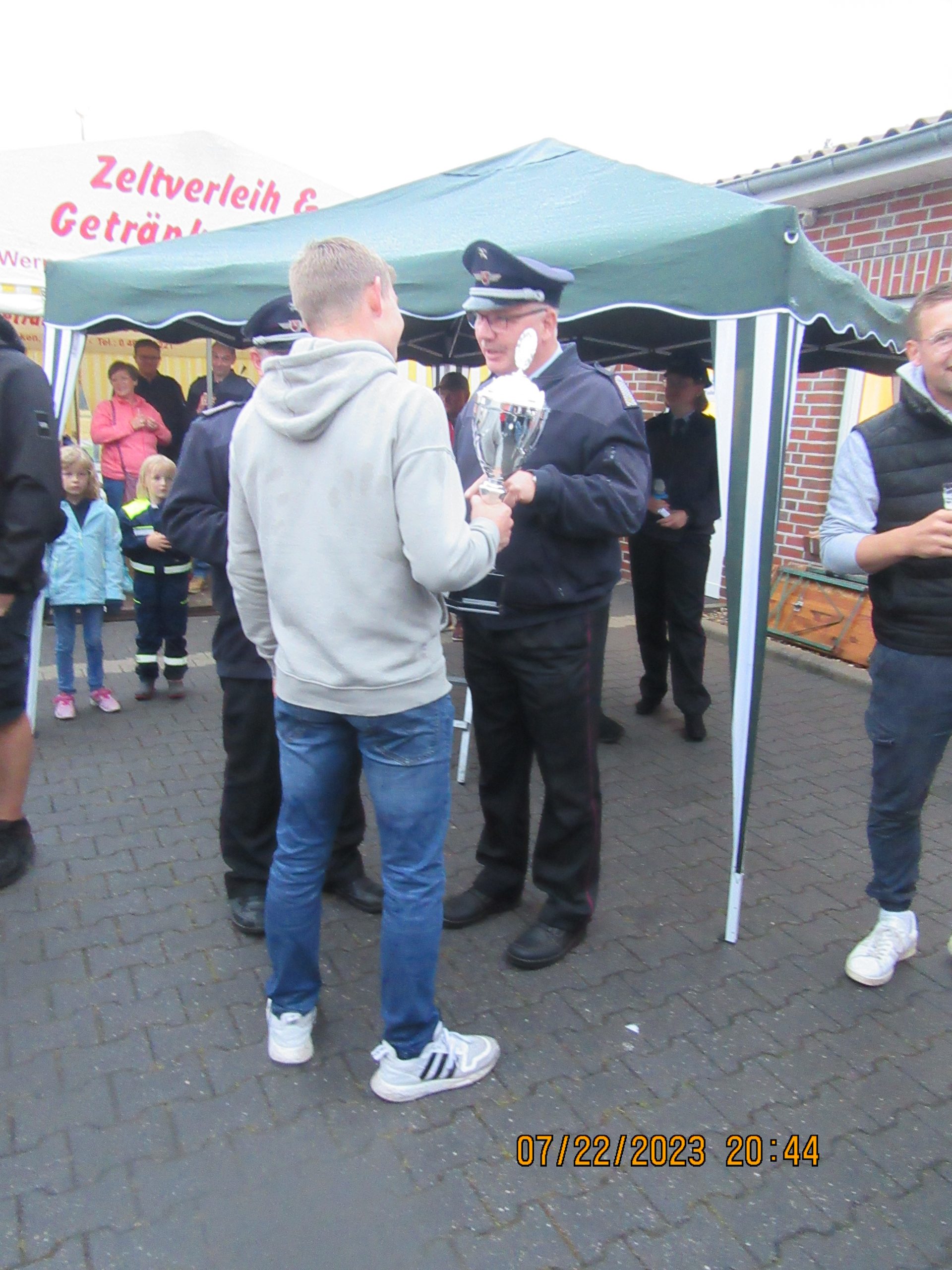 Dieses Jahr hat die Gruppe Cola- Korn- Freunde mit einer Zeit von 66,41 Sekunden den Ersten Platz gemacht und sicherte sich den Siegerpokal.