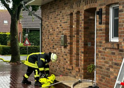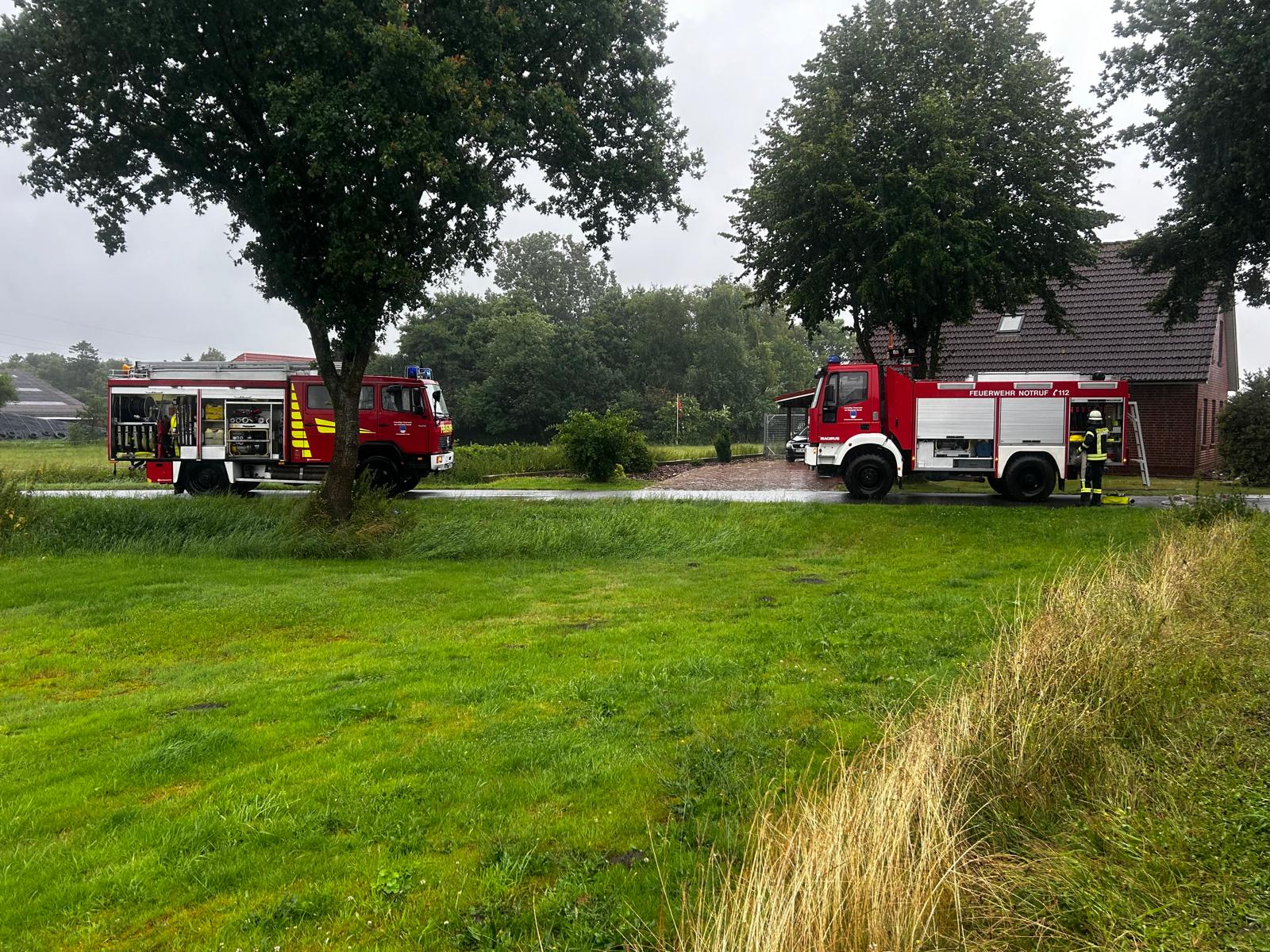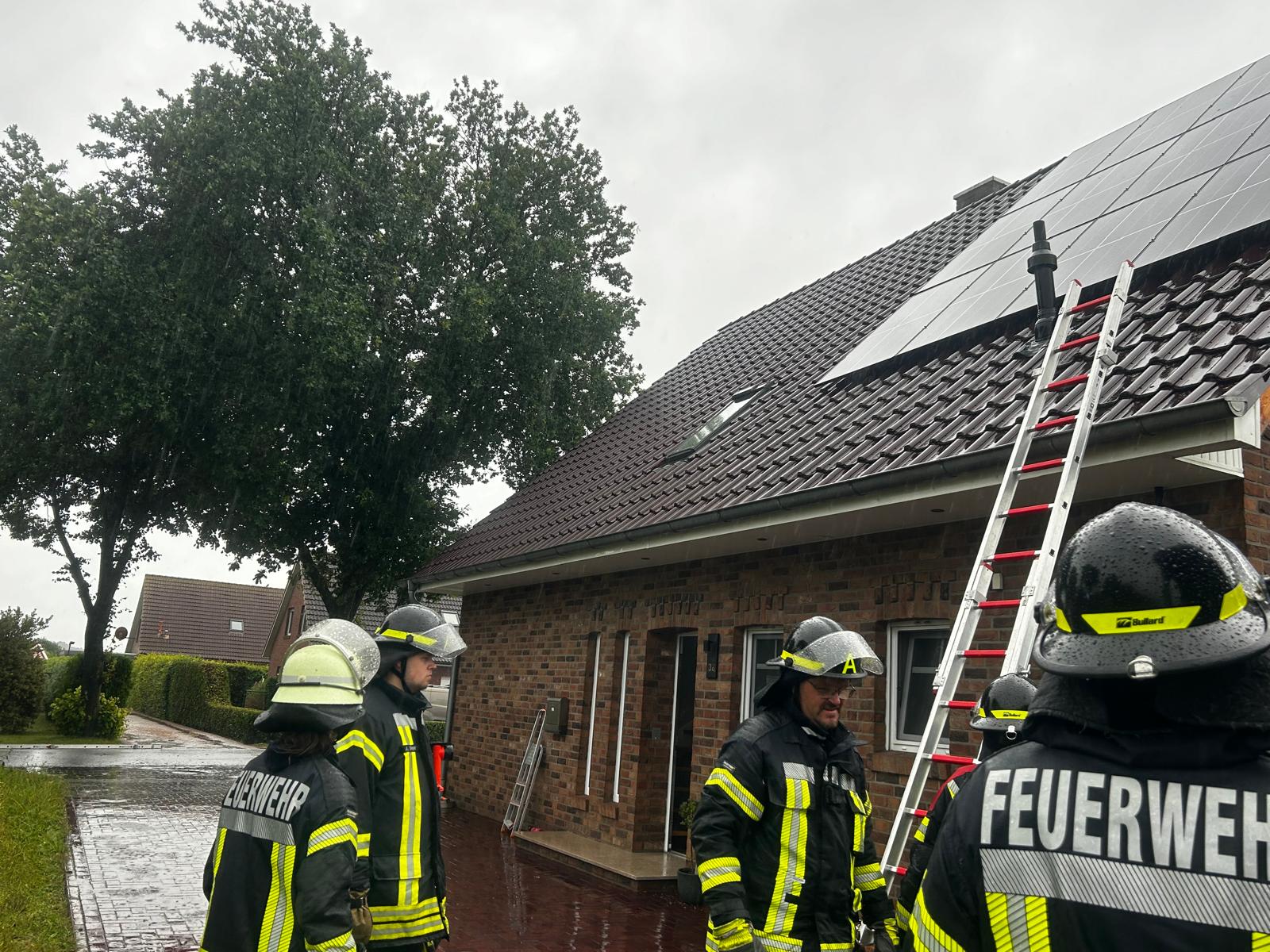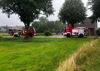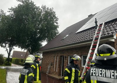 Nach einem Blitzeinschlag in einem Einfamilienhaus in der Straße „Alter Sandweg„ in Boen, entstand ein Brand im Dachstuhl. Zwei Atemschutztrupps im Innenangriff konnten das Feuer schnell unter Kontrolle bringen, eine Ausbreitung wurde verhindert. Mit einem Hubsteiger wurden letzte Brandnester von außen abgelöscht.