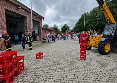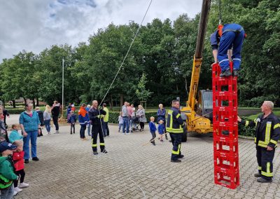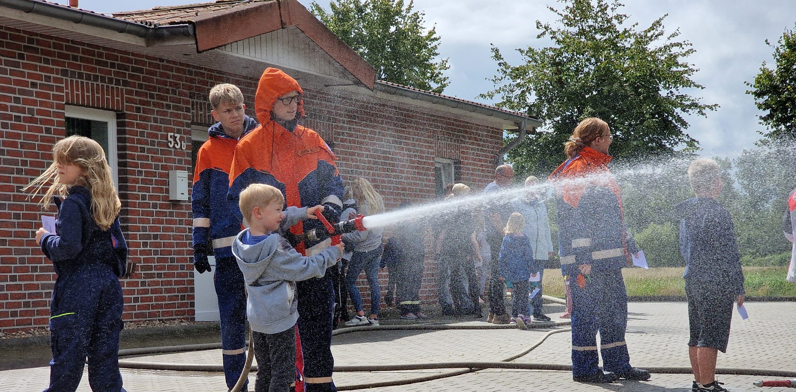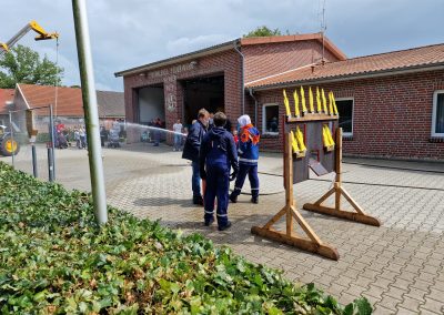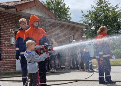 Trotz des wechselhaften Wetters wurde der Kindernachmittag beim Feuerwehrhaus auch in diesem Jahr wieder gut besucht. Highlight für einige Kinder war das Fußball Dart, die Hüpfburg oder die Wasserspiele. Zudem durften die Kinder wieder mit dem LF 10 Wymeer und Boen erkunden.