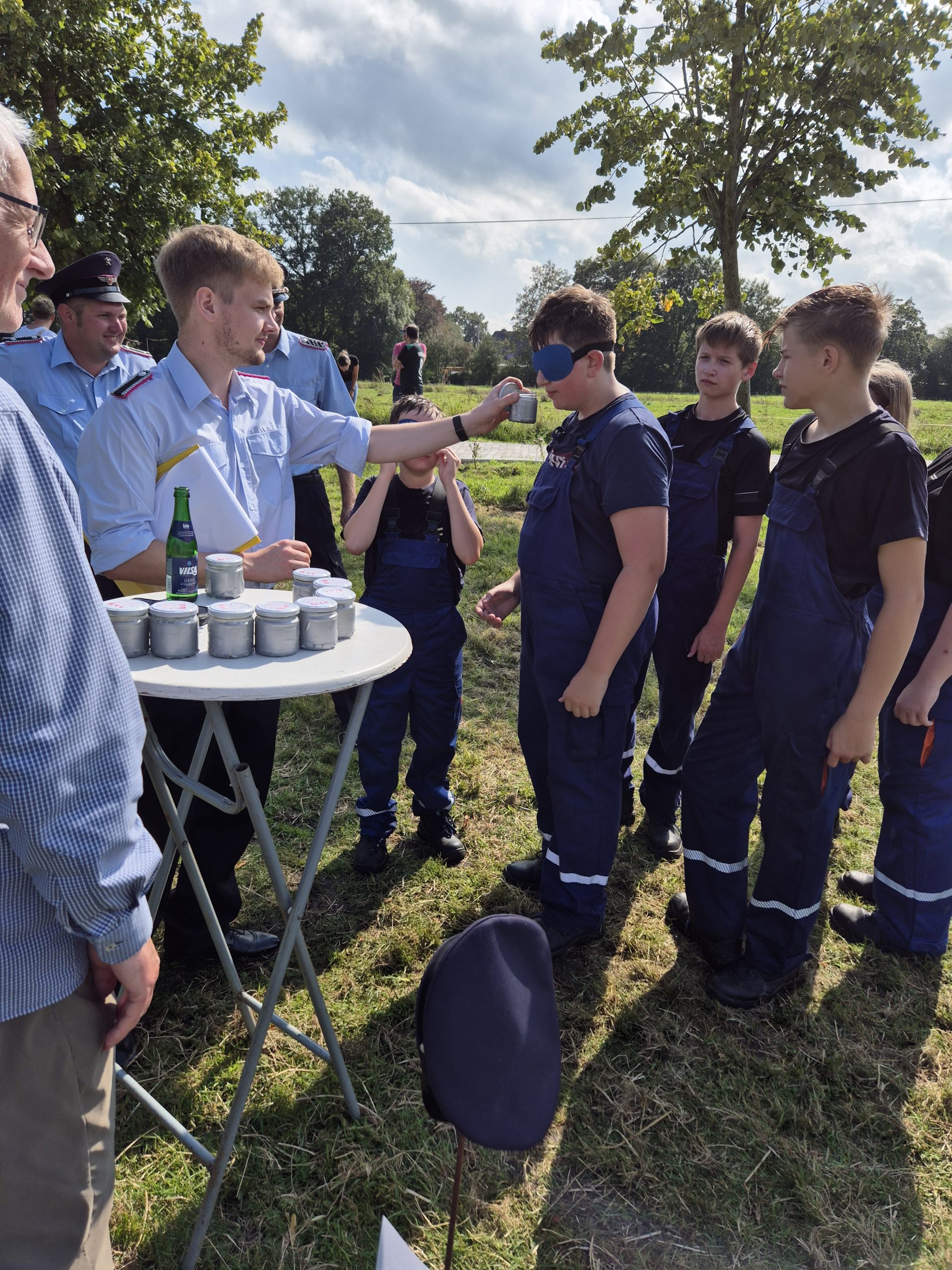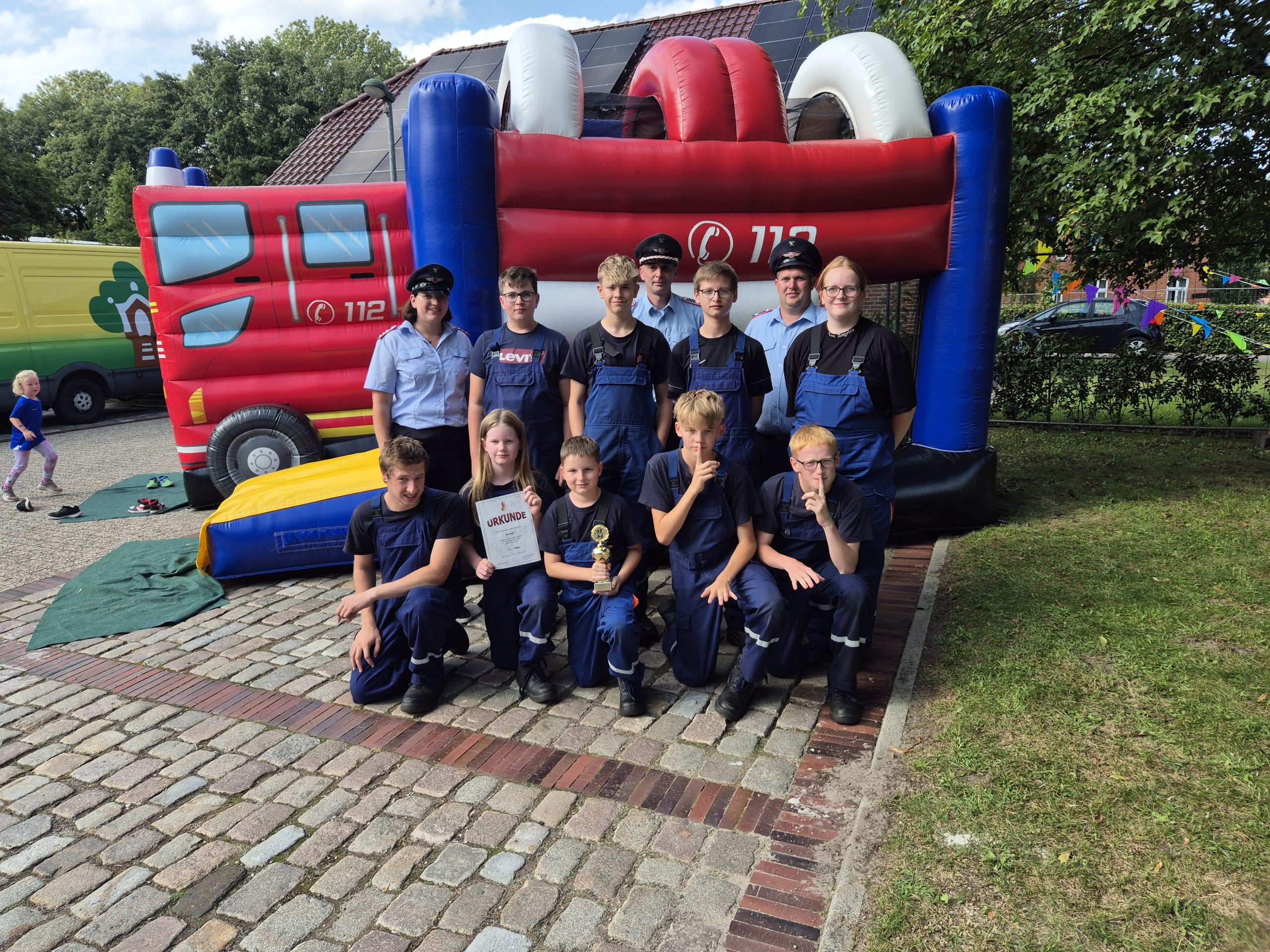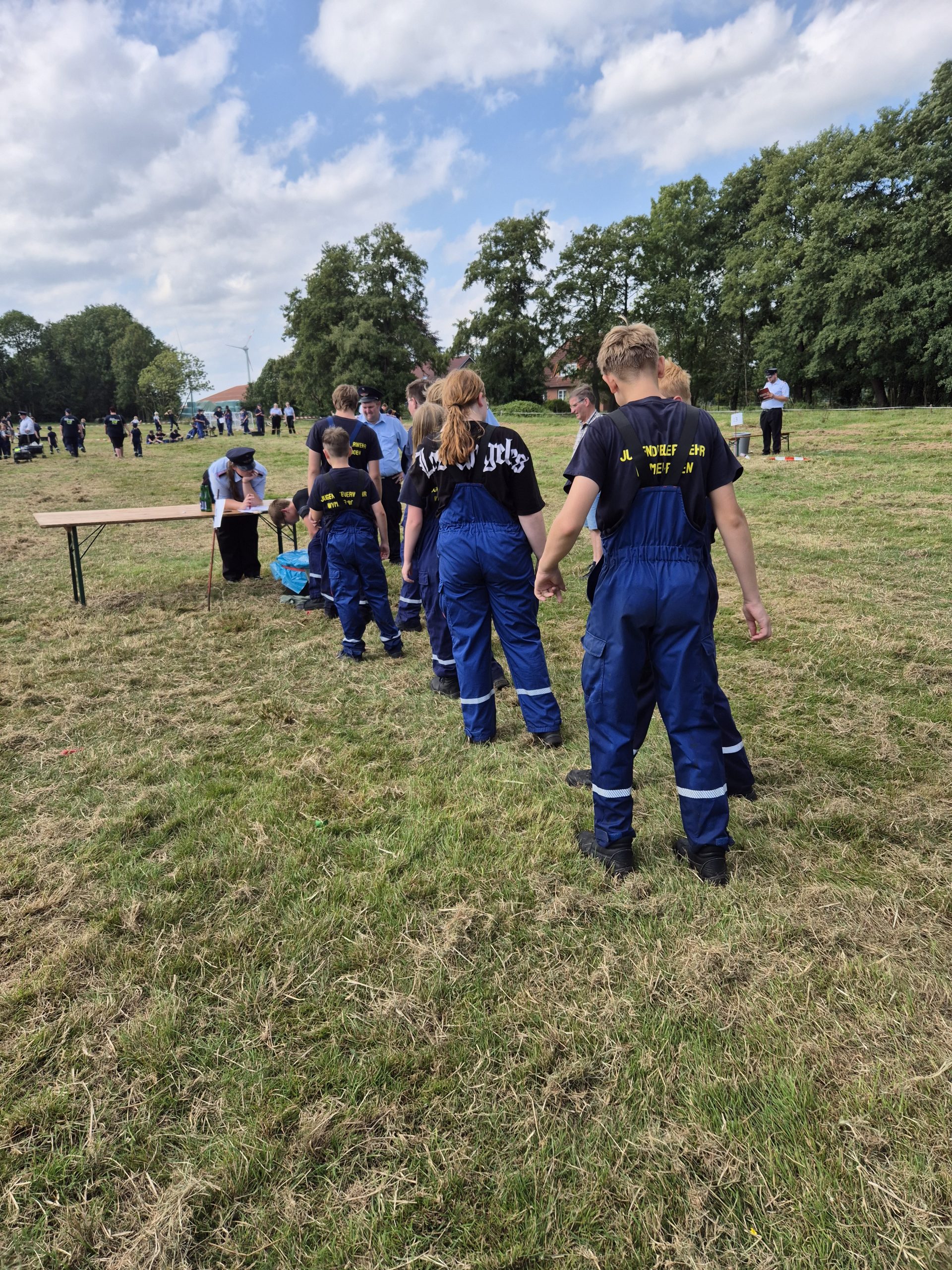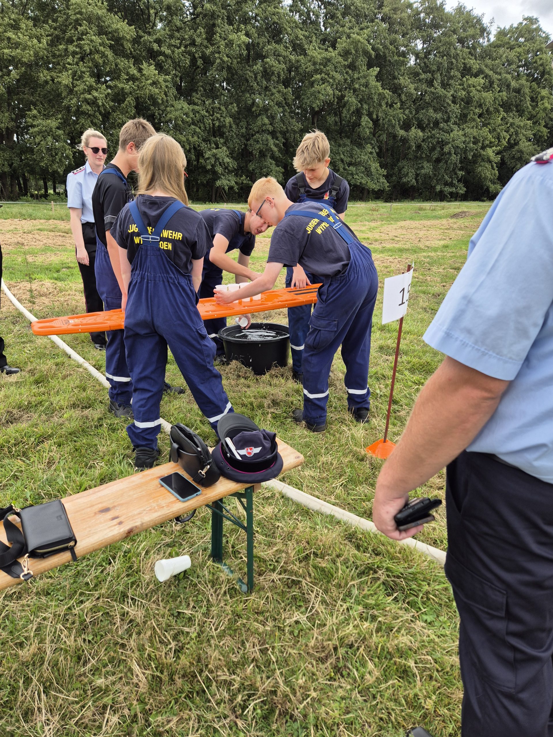 Anlässlich des 95 jährigen Jubiläum der Feuerwehr Weenermoor waren wir am 24. August bei den Freien Spielen in Weenermoor zu Gast. Hier traten die Kinder- und Jugendfeuerwehren der Umgebung gegen einander an. Es müssten insgesamt 15 Spiele bewältigt werden, bei dem Teamgeist, Geschick und Wissen gefragt waren. So musste zum Beispiel mittels eines Spineboard befüllte Becher mit Wasser transportiert werden, Gewürze am Geruch erkannt werden, Sackhüpfen oder auch Gegenstände ertastet werden. Unsere Jugendfeuerwehrkids waren sehr Motiviert und wurden mit den Ersten Platz belohnt, das sie vor allem durch ihr Teamgeist geschafft haben.
