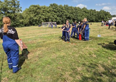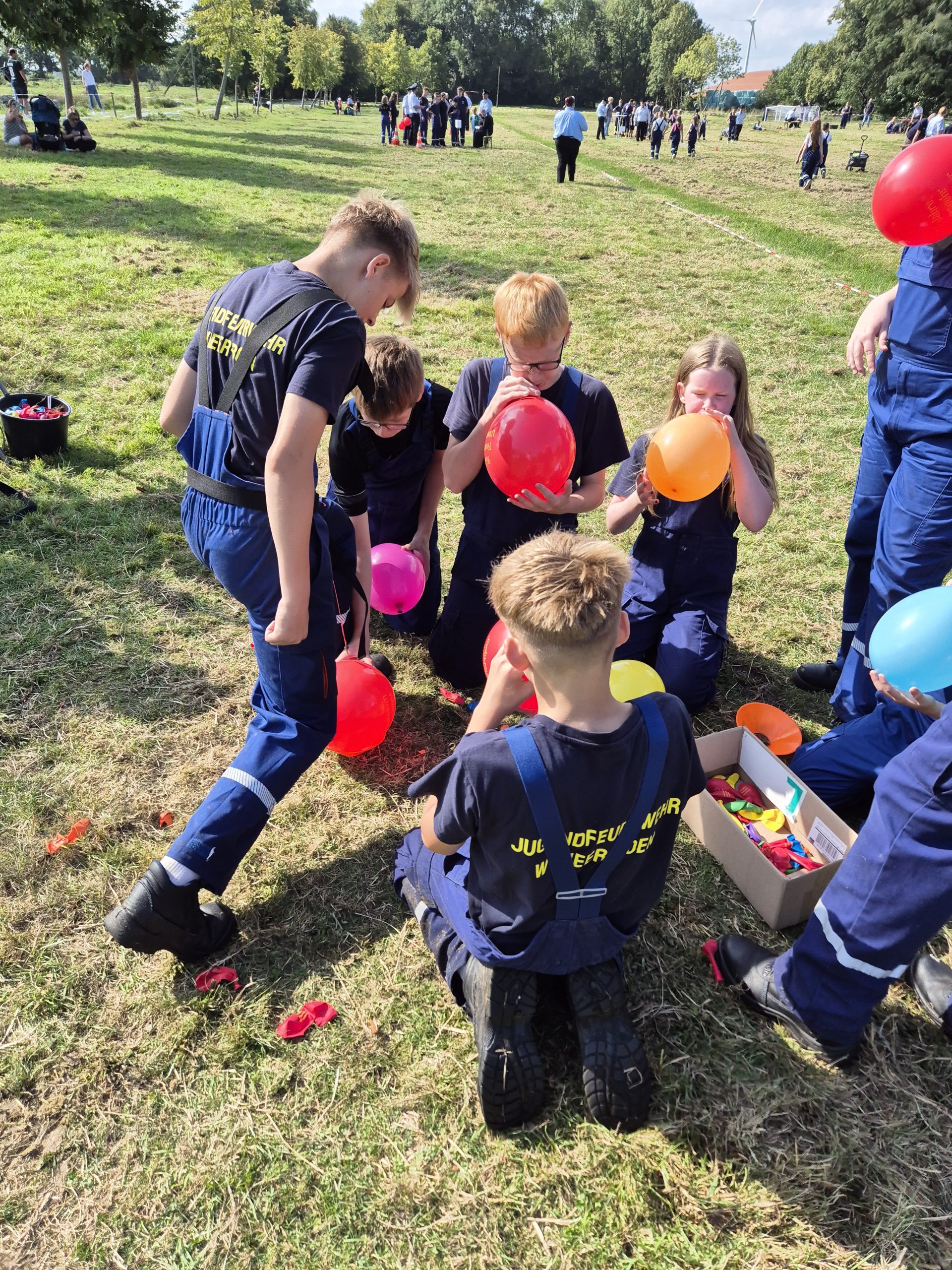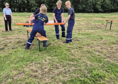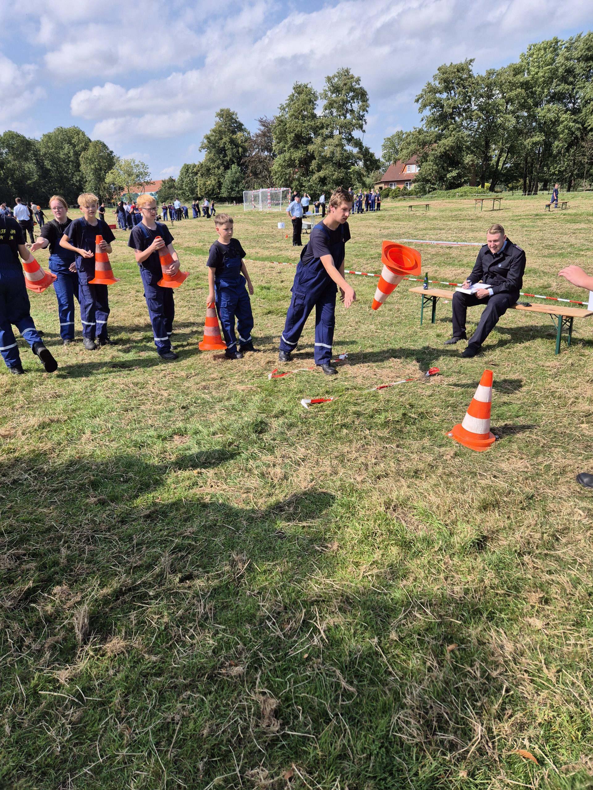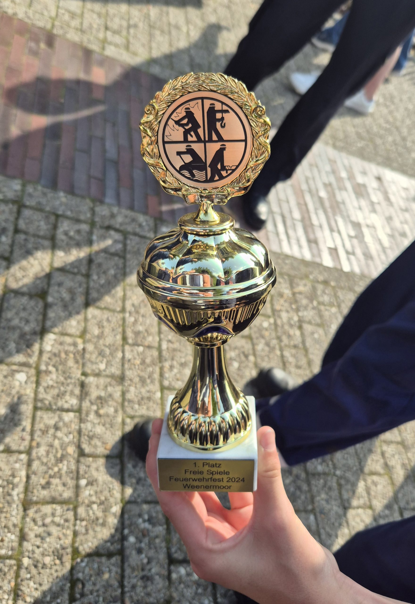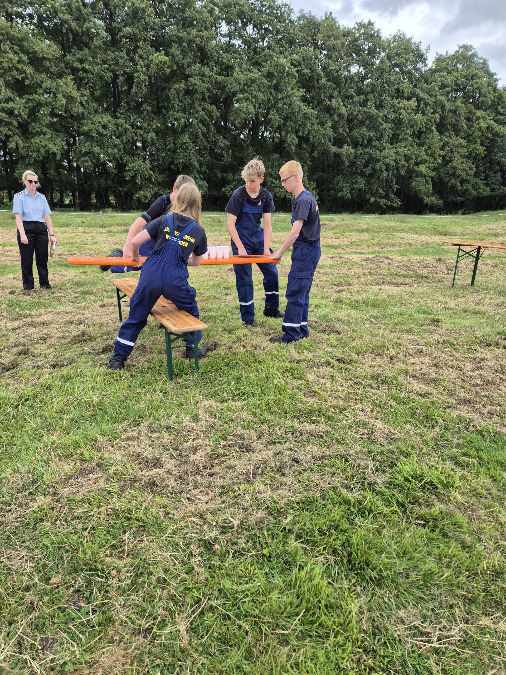 Anlässlich des 95 jährigen Jubiläum der Feuerwehr Weenermoor waren wir am 24. August bei den Freien Spielen in Weenermoor zu Gast. Hier traten die Kinder- und Jugendfeuerwehren der Umgebung gegen einander an. Es müssten insgesamt 15 Spiele bewältigt werden, bei dem Teamgeist, Geschick und Wissen gefragt waren. So musste zum Beispiel mittels eines Spineboard befüllte Becher mit Wasser transportiert werden, Gewürze am Geruch erkannt werden, Sackhüpfen oder auch Gegenstände ertastet werden. Unsere Jugendfeuerwehrkids waren sehr Motiviert und wurden mit den Ersten Platz belohnt, das sie vor allem durch ihr Teamgeist geschafft haben.