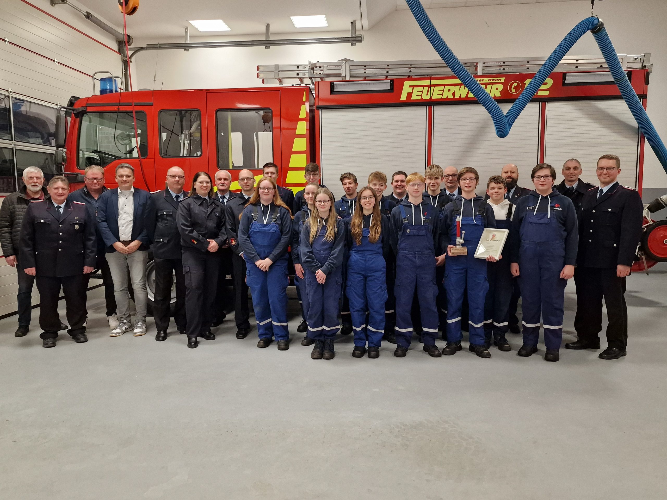 Am 09.01.2025 fand unsere diesjährige Jahreshauptversammlung der Jugendfeuerwehr statt. Unser Jugendfeuerwehrwart Jens Rose zeigt ein volles Jahr 2024 in seinem Jahresbericht. 27 „normale“ Dienste und 36 „extra“ Dienste füllten das Jahr. Neben der Ausbildung im Bereich der Feuerwehr wurden viele Dienste auch im Sinne der „Gemeinschaft“ und „Teamgeist“ gestaltet. Dienste in der Turnhalle, Ausflug zur Tag der offenen Tür in Bunde, ein Kinobesuch und ein Tag bei der Lasertag Arena in Leer waren nur kleine Ausschnitte vom Jahr. Das Highlight 2024 war mit Sicherheit das Zeltlager beim TUS Ditzumerverlaat mit der Jugendfeuerwehr Bunde, Jugendfeuerwehr Dollart/Bunderhee und der Jugendfeuerwehr Borkum.