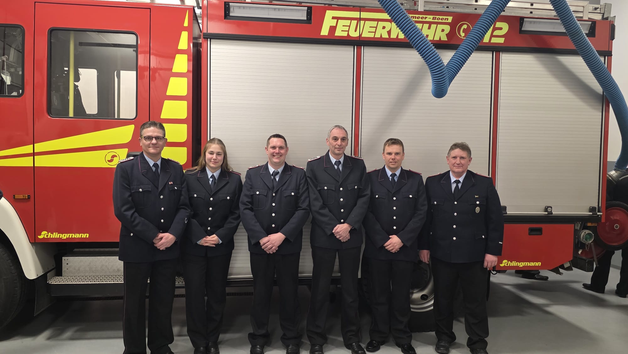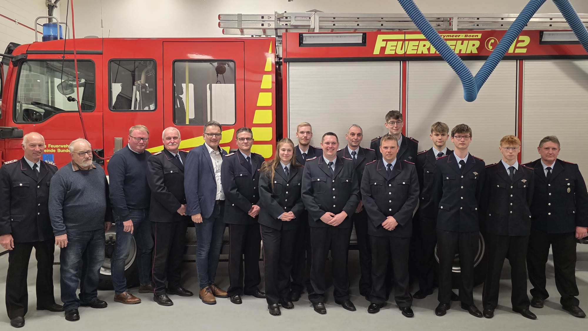 Die Feuerwehr Wymeer-Boen traf sich jetzt zu ihrer Jahresversammlung. Die Ortswehr kann dabei auf ein ereignisreiches und erfolgreiches Jahr zurückblicken. Zum Stichtag 21. Januar 2026 zählt die Einsatzabteilung 41 Mitglieder, davon 34 Männer, mit einem Altersdurchschnitt von 40 Jahren, und sieben Frauen mit einem Altersdurchschnitt von 25 Jahren, berichtete Ortsbrandmeister Thomas Heyen. Im Jahr 2025 gab es einen Austritt sowie zwei Neuzugänge und vier Übernahmen aus der Jugendfeuerwehr. Die Altersabteilung besteht aus sieben Kameraden mit einem Altersdurchschnitt von 69 Jahren. Im vergangenen Jahr war die Feuerwehr Wymeer-Boen bei elf Brandeinsätzen gefordert. Darüber hinaus wurden acht technische Hilfeleistungen durchgeführt. Somit wurden insgesamt im Jahr 2025 19 Einsätze geleistet. Es wurden von der Gemeinde Bunde einige Anschaffungen für die Ortswehr getätigt. Dazu zählen sechs Helmlampen für Atemschutzgeräteträger, zwei LED Strahler und eine Funkanlage für den Mannschaftstransportwagen. Diese müsse noch eingebaut werden. Zudem sei der Türöffnungssatz nun vollständig. Bei den Schnelligkeitswettbewerben der Feuerwehren im vergangenen Jahr hat die Wehr aus Wymeer-Boen kräftig abgeräumt. Bei den acht Teilnahmen standen am Ende fünf erste Plätze zu Buche. Neu aufgenommen wurden Ihno Geertsema, der seit dem 28. August zur Feuerwehr gehört und Markus Haseborg, der als ehemaliges Mitglied der Feuerwehr Diele jetzt in Boen lebt. Aus der Jugendabteilung wurden vier Mitglieder in die aktive Abteilung übernommen, es sind Hauke Geertsema, Thore Hensen, Jonas Rose und Eike Smid. Ortsbrandmeister Thomas Heyen beförderte mit tatkräftiger Unterstützung seines Stellvertreters Heiner Meints Lana Isabel Mensink vom Dienstgrad der Anwärterin zur Feuerwehrfrau. Berend-Heinrich Osterhagen wurden ebenfalls vom Anwärter zum Feuerwehrmann befördert. Ralf van Scharrel vom Oberfeuerwehrmann zum Hauptfeuerwehrmann befördert. Gemeindebrandmeister Peter Oltmanns beförderte Jens Aeissen vom Löschmeister zum Oberlöschmeister. Ab dem 13. November ist er als Gruppenführer der Taktischen Einheit Gruppe eingesetzt. Ortsbrandmeister Thomas Heyen dankte Meenhard Meinders, der in den vergangenen sechs Jahre Gruppenführer der Taktischen Einheit Gruppe war, für sein Engagement.
